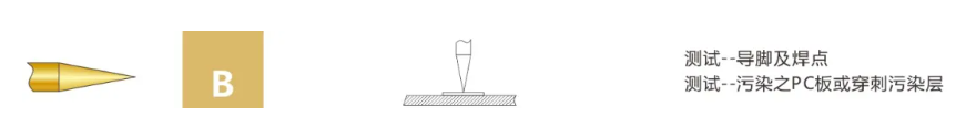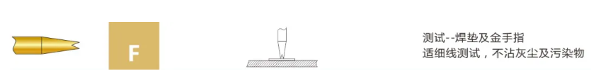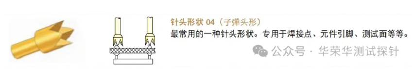 3. 大四爪型:最常用的一種針頭形狀。專用于焊接點(diǎn)、元件引腳、測(cè)試面等。