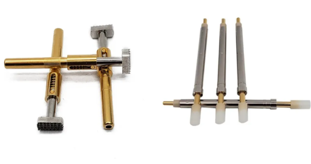 測試針,業(yè)內(nèi)也稱探針,用于PCB板測試時又分為彈簧針,彈簧針根據(jù)使用情況又分為PCB板探針、ICT探針、BGA探針,PCB板探針主要用于PCB板測試,ICT探針主要用于插件后的在線測試,BGA探針主要用于BGA封裝測試及芯片測試。