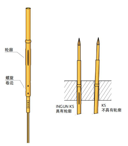 針對不同的測試治具工作行程和測試點(diǎn),探針套應(yīng)有相應(yīng)的卡環(huán)和壓環(huán)系列,以適應(yīng)不同的安裝高度。