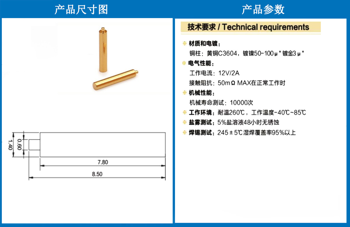 產(chǎn)品型號:1.4*8.5銅柱(卷帶)