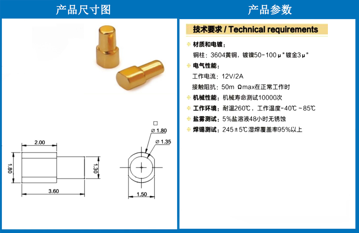 1.8*3.6側(cè)焊銅柱 當(dāng)前位置:首頁 » POGO PIN充電彈簧頂針 » 銅柱系列