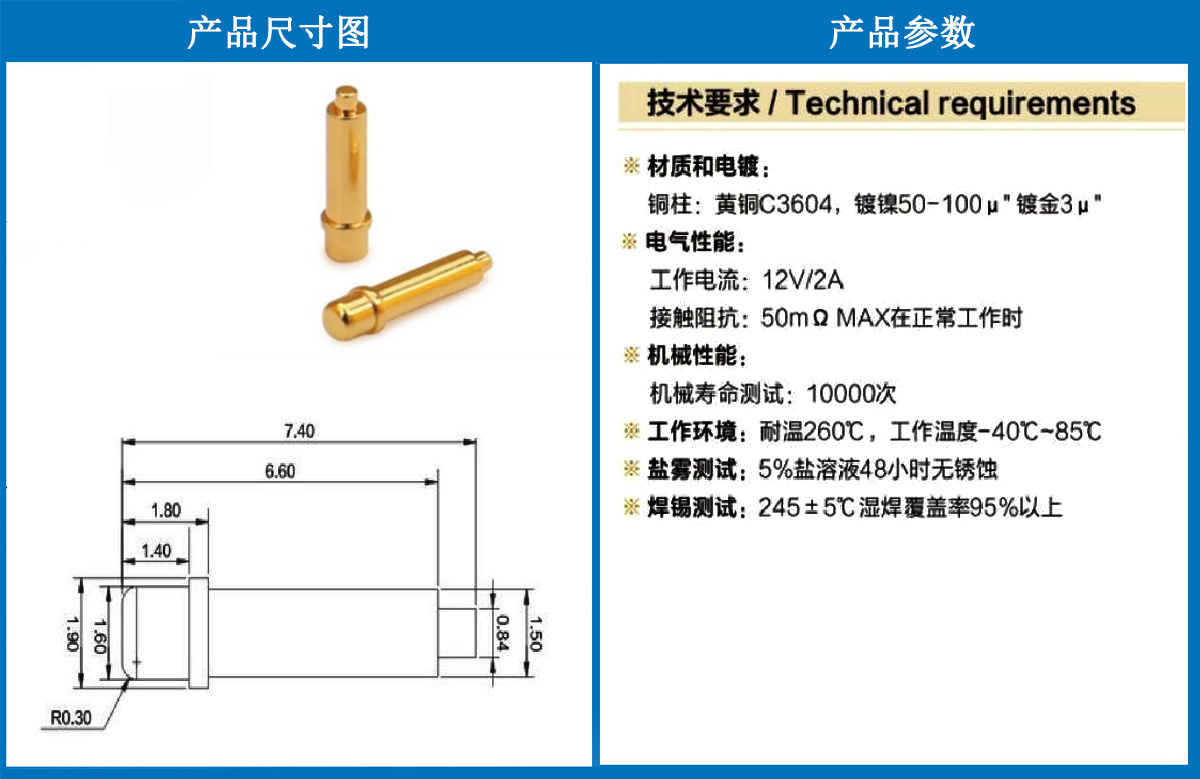 產(chǎn)品介紹:這個(gè)針通常用于智能手表,藍(lán)牙耳機(jī)上的有充電的功能,但是探針總體來(lái)說(shuō)還是測(cè)試的