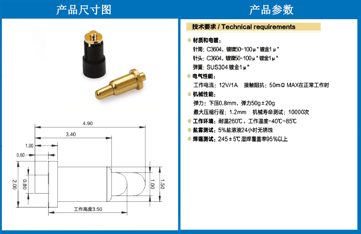 產(chǎn)品介紹:這個(gè)針通常用于智能手表,藍(lán)牙耳機(jī)上的有充電的功能,但是探針總體來(lái)說(shuō)還是測(cè)試的