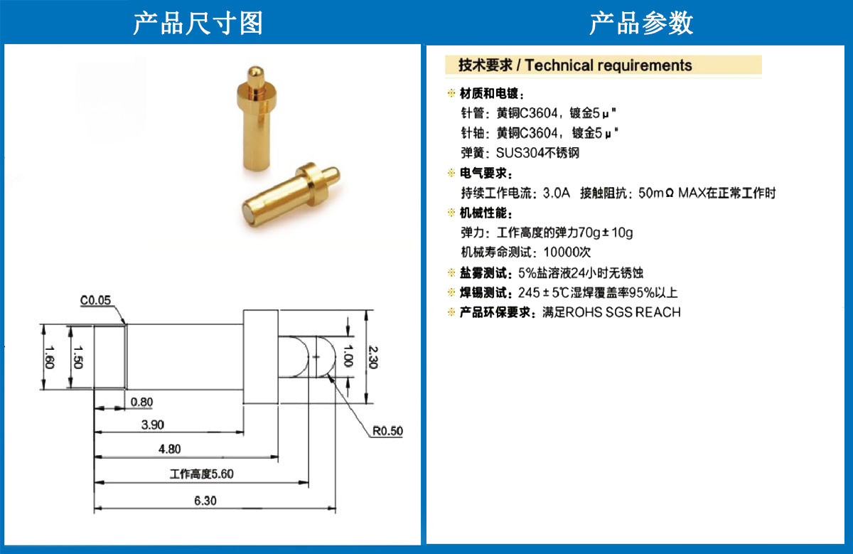 產品介紹:這個針通常用于智能手表,藍牙耳機上的有充電的功能,但是探針總體來說還是測試的