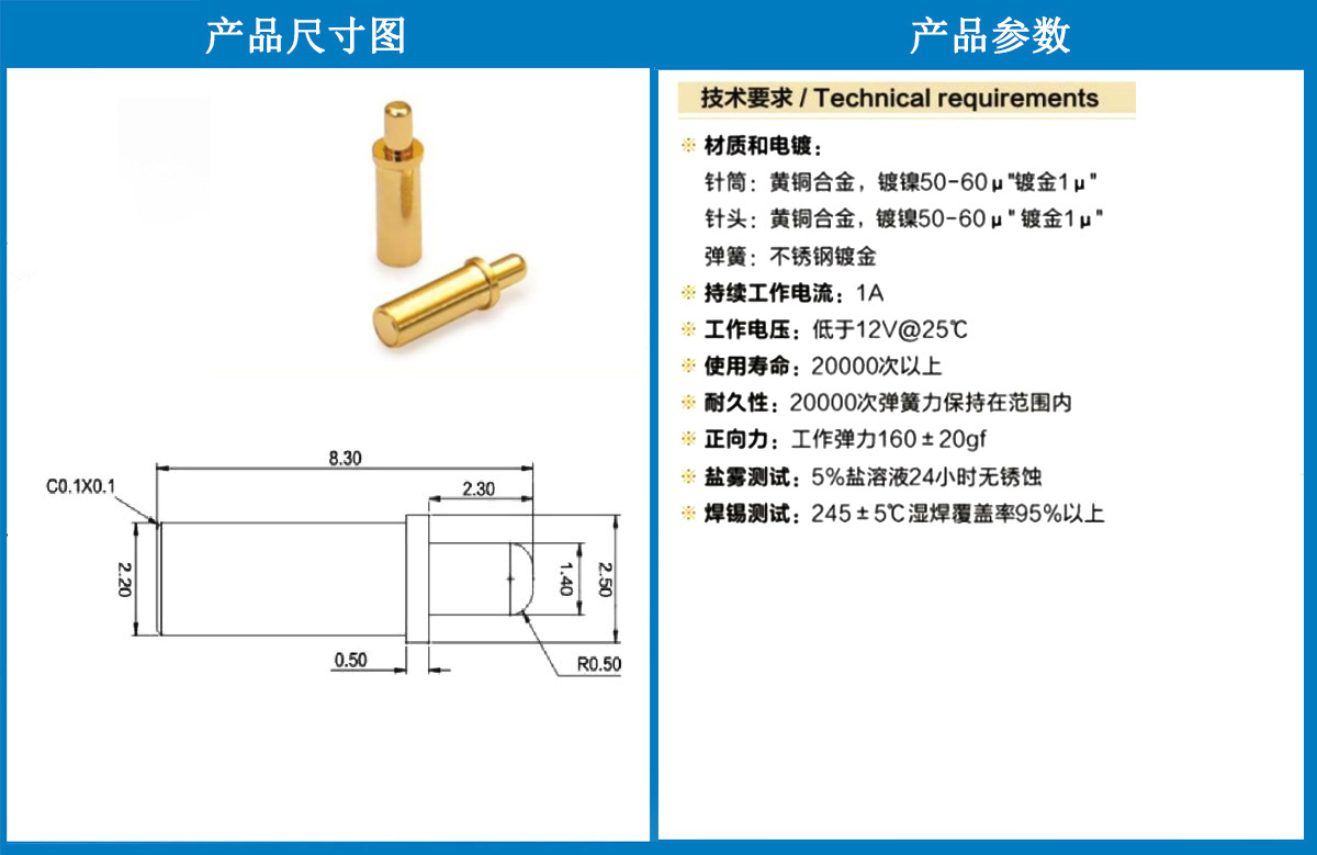 產(chǎn)品介紹:這個針通常用于智能手表,藍牙耳機上的有充電的功能,但是探針總體來說還是測試的