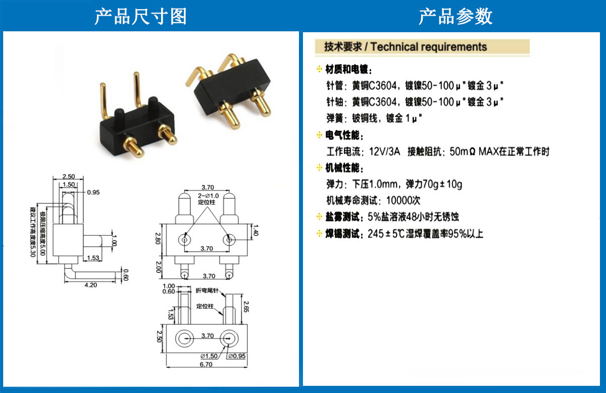 產(chǎn)品介紹:這個(gè)針通常用于智能手表,藍(lán)牙耳機(jī)上的有充電的功能,但是探針總體來(lái)說(shuō)還是測(cè)試的