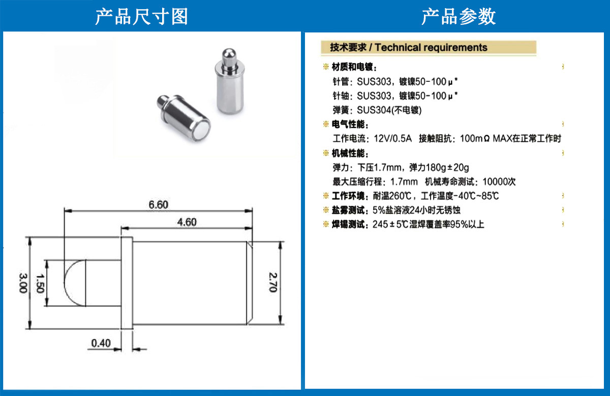 3.0*6.6電極針 當(dāng)前位置:首頁(yè) » POGO PIN充電彈簧頂針 » 電極針