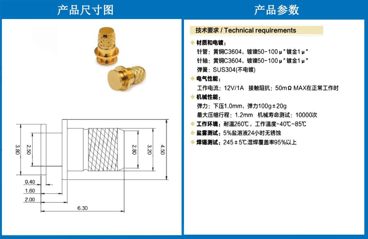 產(chǎn)品介紹:這個(gè)針通常用于智能手表,藍(lán)牙耳機(jī)上的有充電的功能,但是探針總體來(lái)說還是測(cè)試的