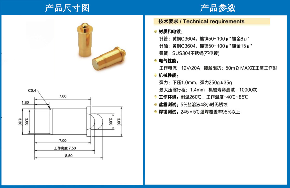 3.8*8.5彈針 當(dāng)前位置:首頁 » POGO PIN充電彈簧頂針 » 彈針系列
