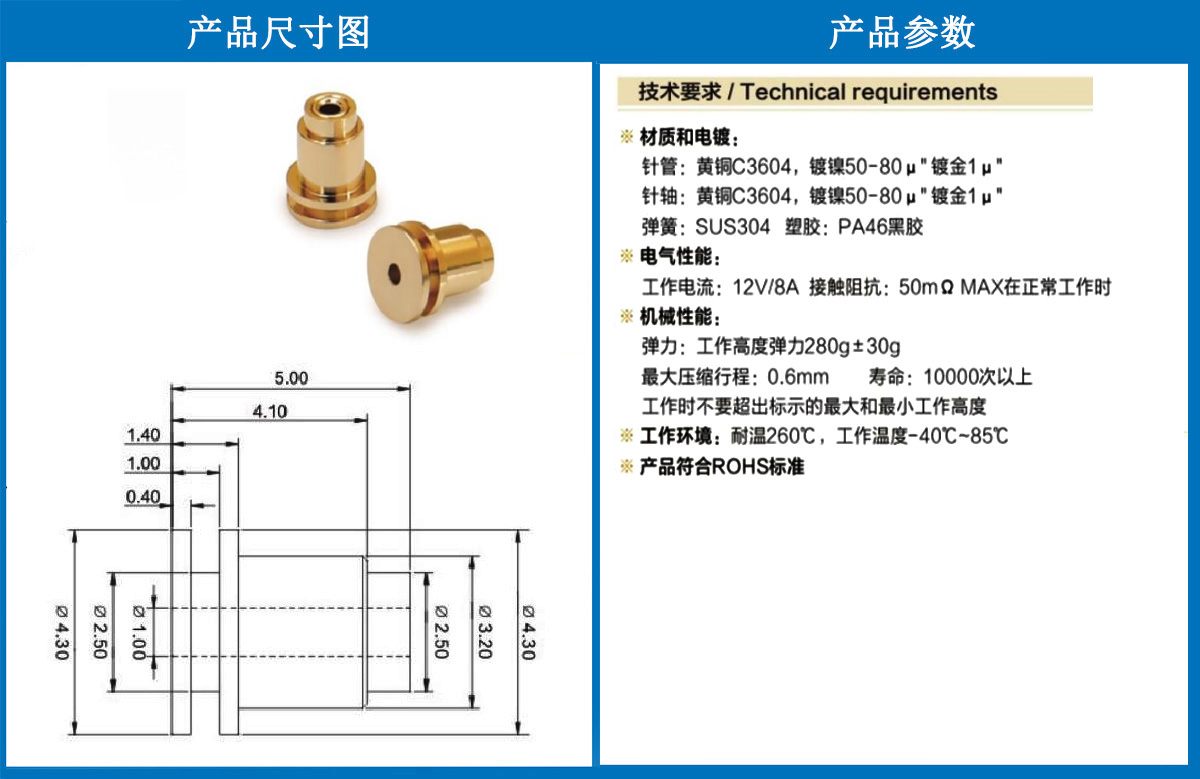 4.30*5.0電極針 當(dāng)前位置:首頁(yè) » POGO PIN充電彈簧頂針 » 電極針