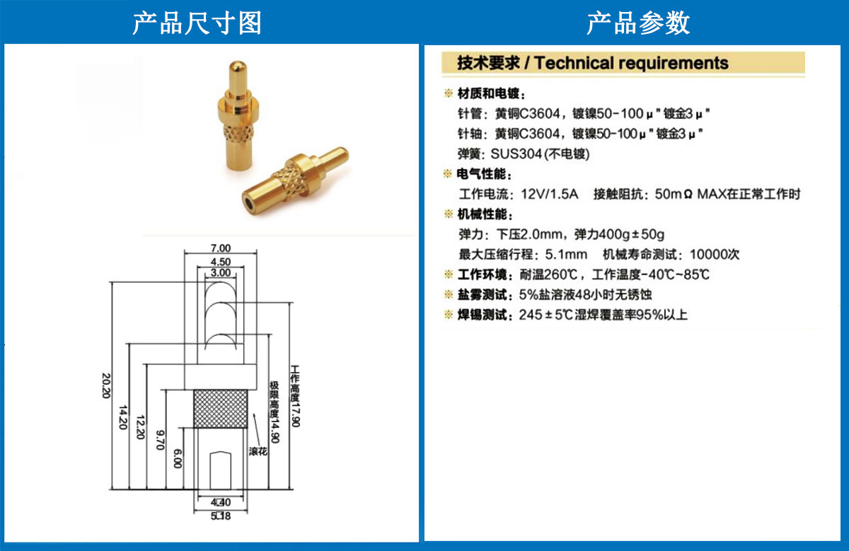 鍍厚金彈簧頂針連接器的壽命
