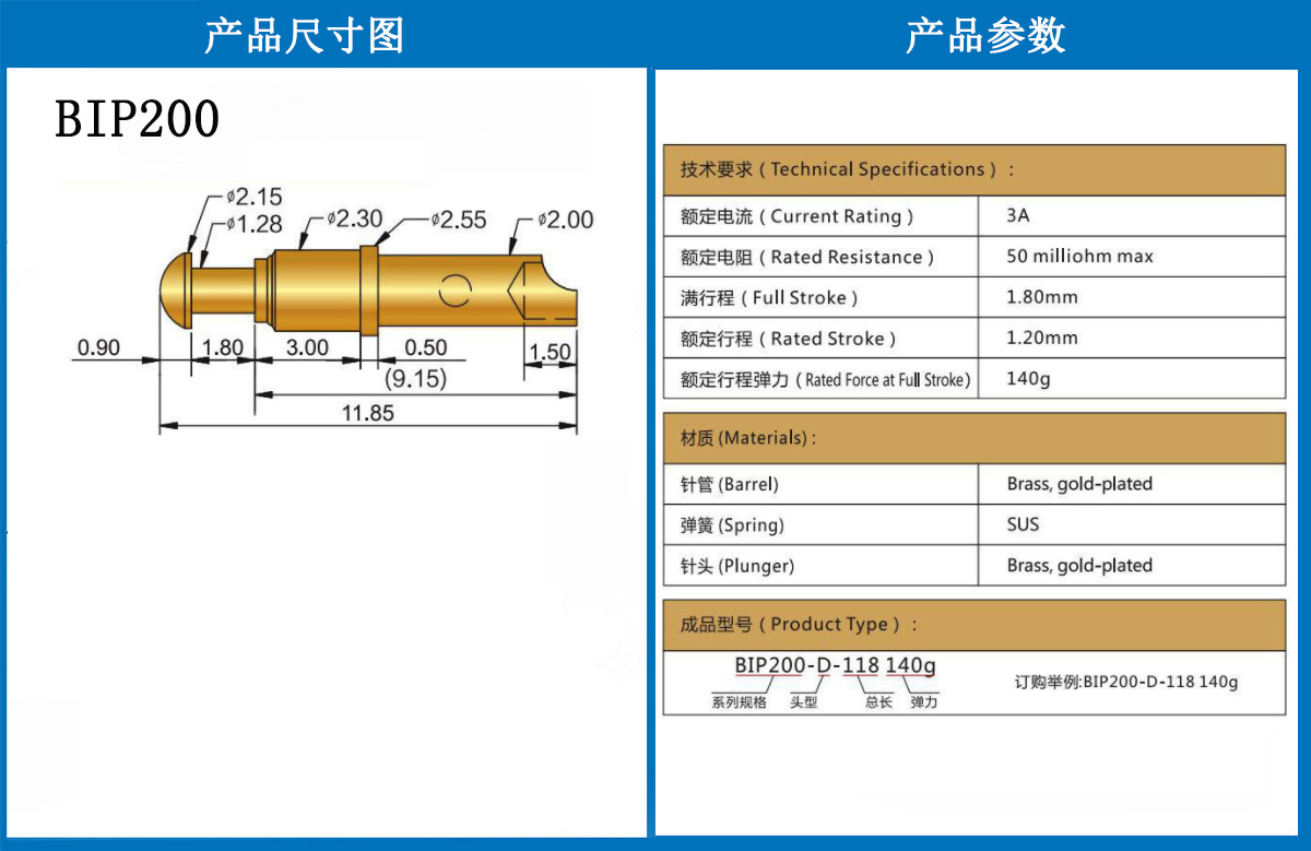 BIP200 當(dāng)前位置:首頁(yè) » POGO PIN充電彈簧頂針