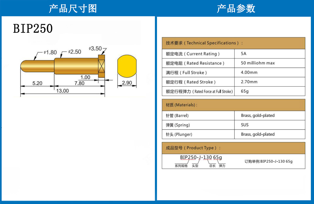 BIP250 當(dāng)前位置:首頁(yè) » POGO PIN充電彈簧頂針