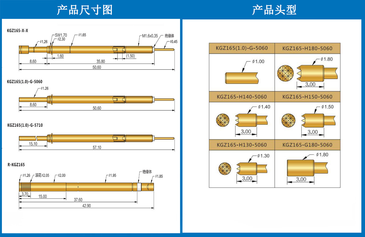 產(chǎn)品簡(jiǎn)介:KGZ165探針、1.65mm測(cè)試針、總長(zhǎng)50.60mm、彈簧針、測(cè)試針