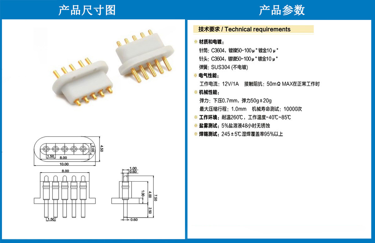 產(chǎn)品介紹:這個(gè)針通常用于智能手表,藍(lán)牙耳機(jī)上的有充電的功能,但是探針總體來說還是測(cè)試的