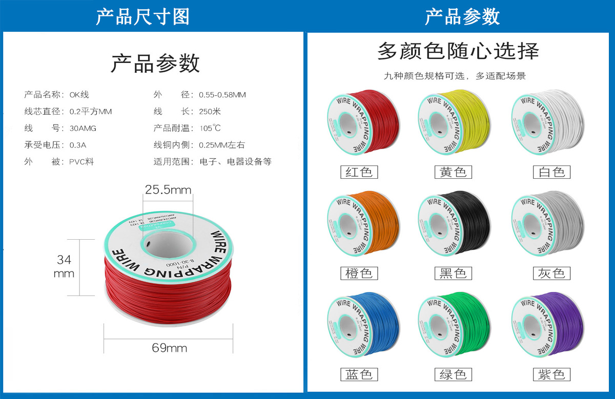 產(chǎn)品簡(jiǎn)介:治具配件,測(cè)試配件,OK線,30#OK線 ,導(dǎo)線單芯銅線